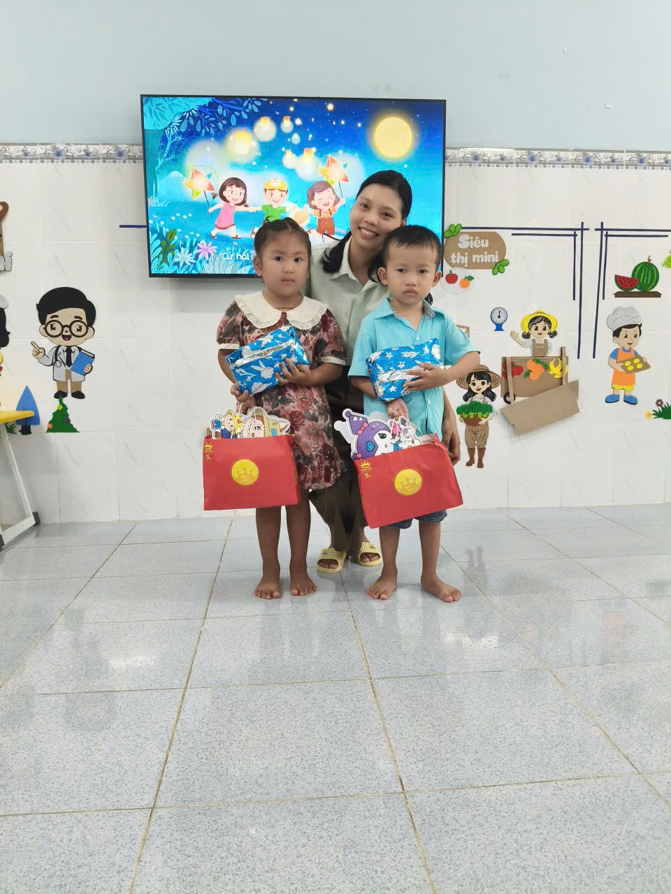 Niềm vui vỡ òa khi từng phần quà trung thu được trao tận tay các em nhỏ. Ánh mắt háo hức, nụ cười rạng rỡ của các bé khiến không khí buổi lễ thêm phần ấm áp và tràn đầy yêu thương. Ngoài ra, nhà trường cũng không quên trao những phần quà ý nghĩa cho các em có hoàn cảnh khó khăn, giúp các bé có một mùa trăng trọn vẹn hơn.